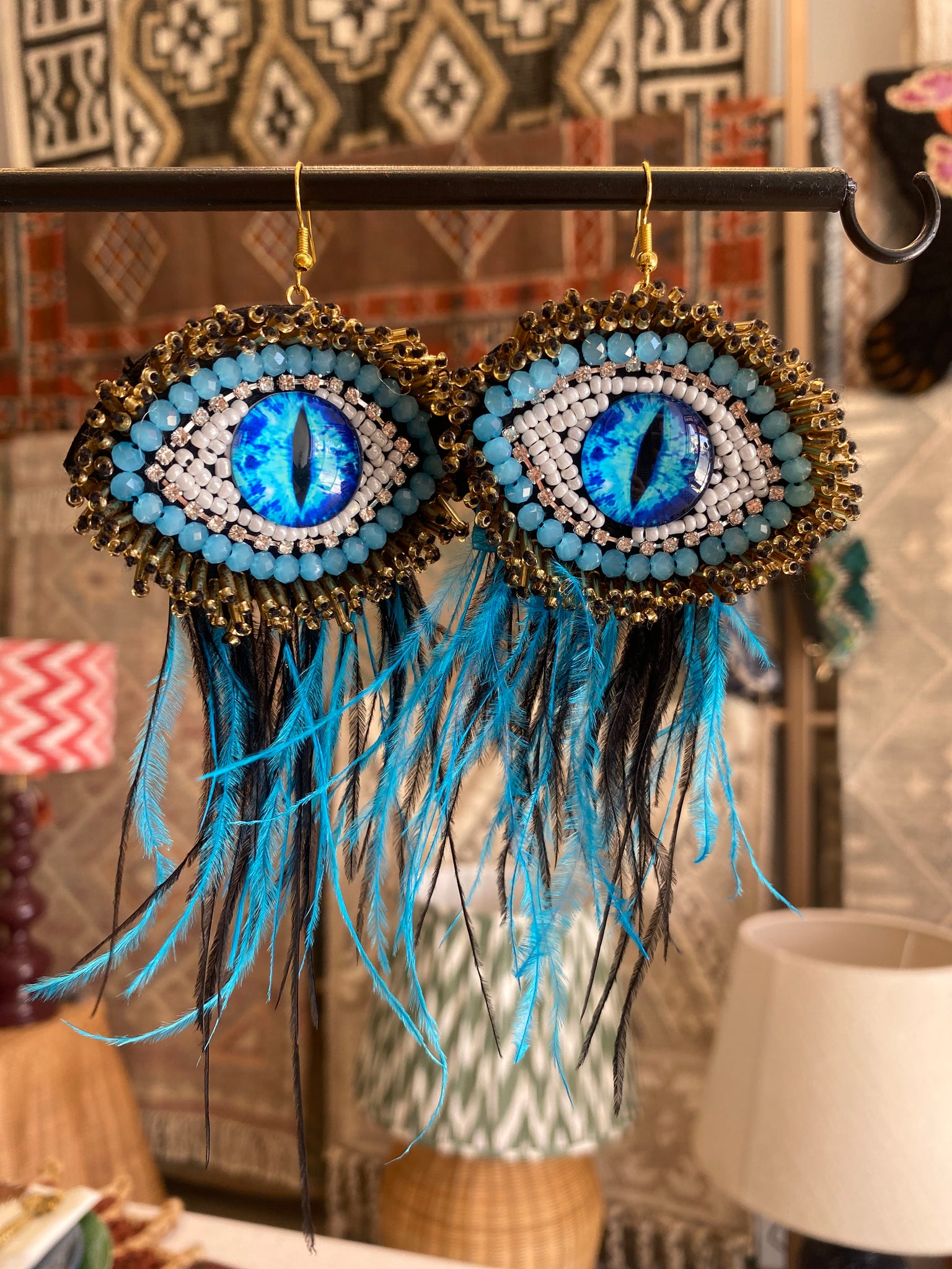 The Amelia Feather Earrings are hand-crafted with intricate beadwork, involving vibrant shades of blue and black accents. Finished with soft feather details that add movement, these earrings are more than accessories - they’re wearable art. However you style them, these earrings are sure to turn heads and spark conversation.