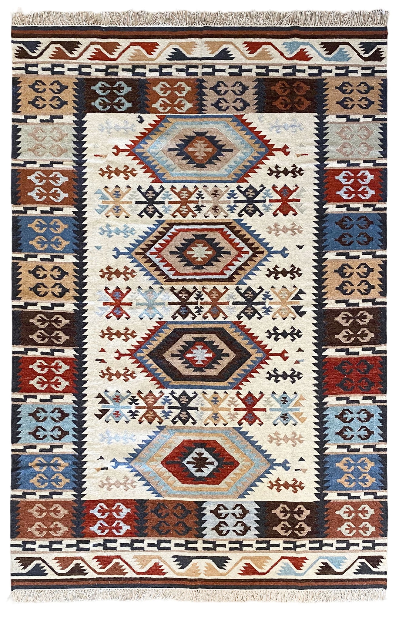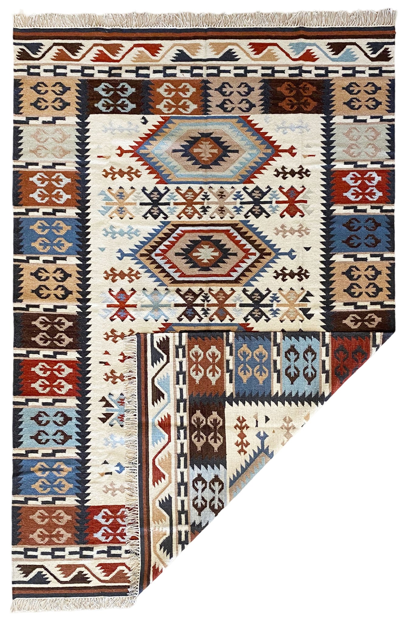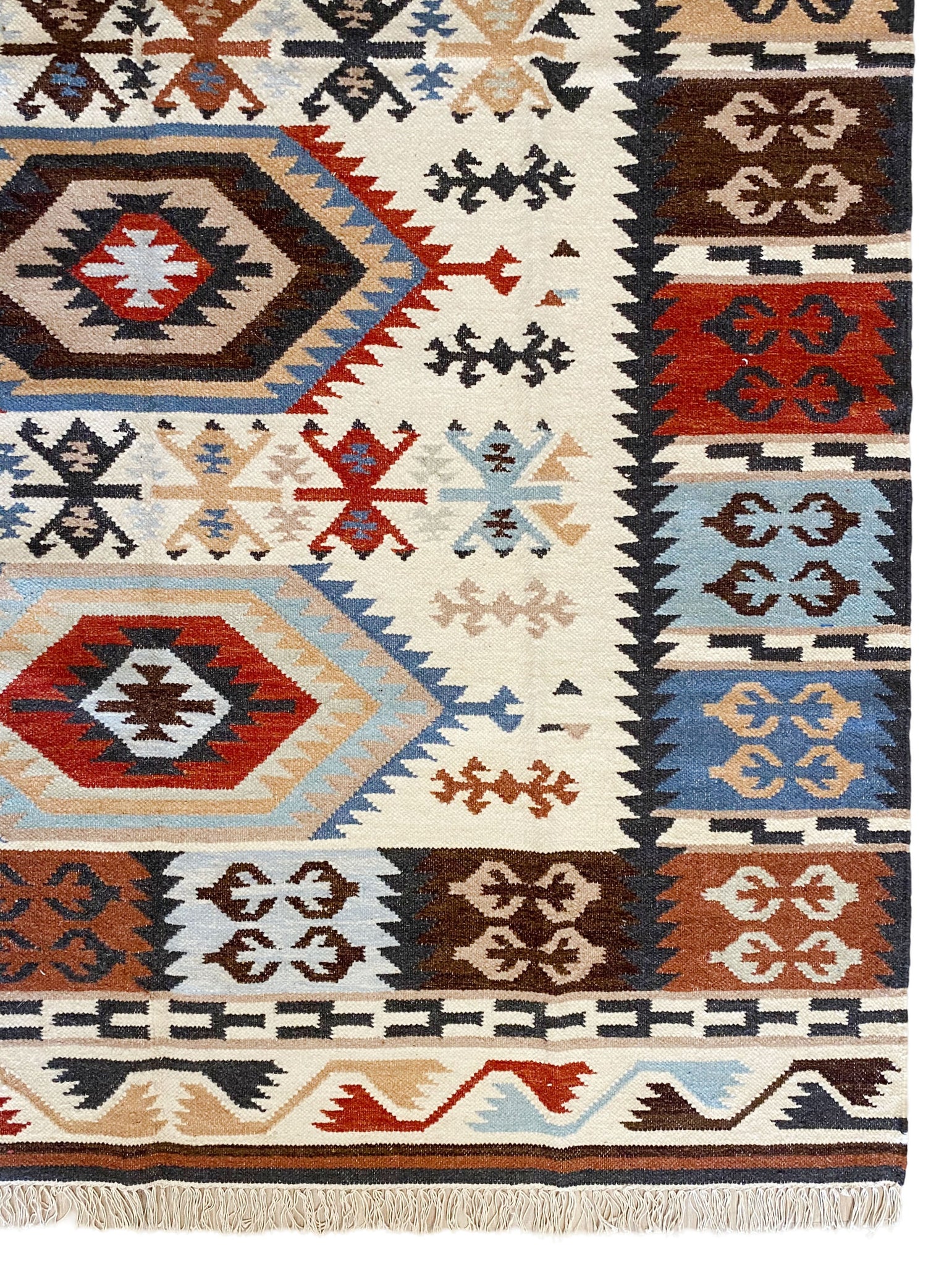 Meet the Ourika Rug – a striking handcrafted piece that blends timeless tradition with bold, soulful character. Woven in a palette of earthy tones and cool blues, its intricate diamond motifs and tribal-inspired borders echo stories of craftsmanship. Whether laid in a hallway or living space, Indira will become a statement piece for your home.