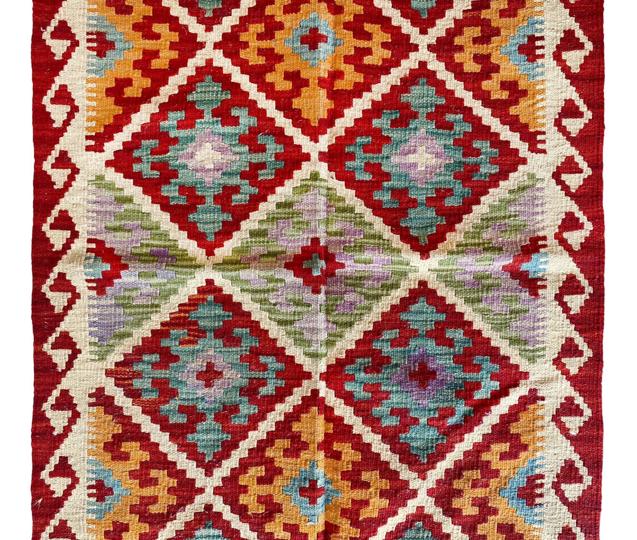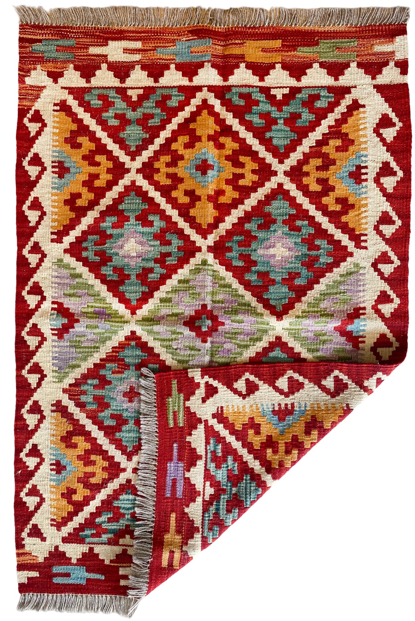 Meet the Tama Kilim – a compact statement piece woven by talented artisans. Its bold diamond motifs and intricate borderwork are inspired by age-old kilim patterns, telling a story of tradition. Perfectly sized for entryways, bedside accents, or cosy reading corners, Tama brings elegance to even the smallest of spaces.
