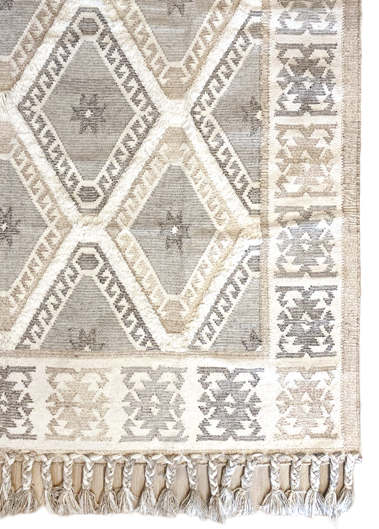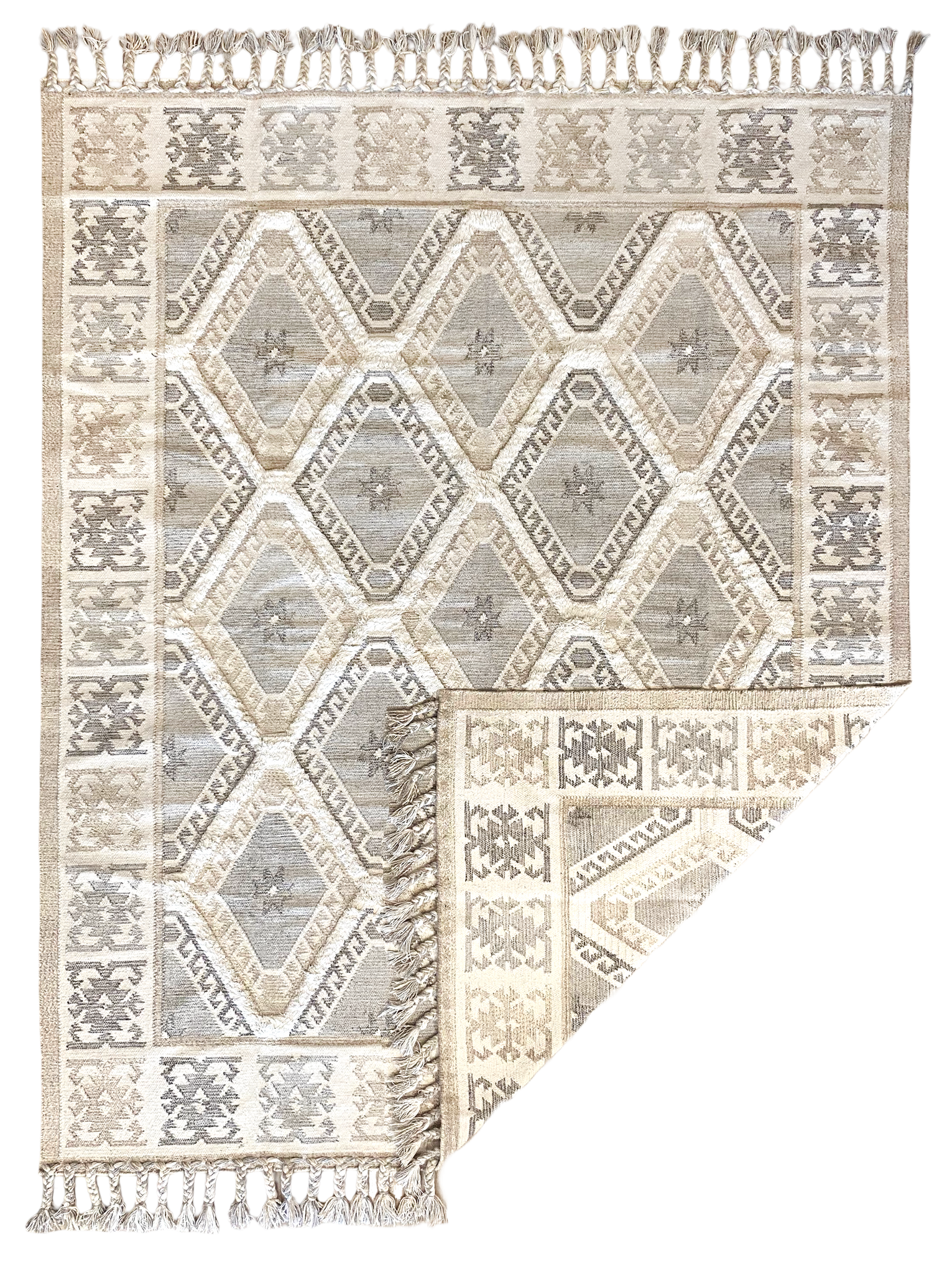 Presenting our Stone Grey Rug, featuring a timeless diamond pattern in elegant shades of grey and white. Handcrafted with precision, this rug radiates sophistication and tranquility, making it an ideal complement to any room. The refined colour palette and intricate design involving some pile details, come together to create a visually striking and harmonious piece that enhances any space.