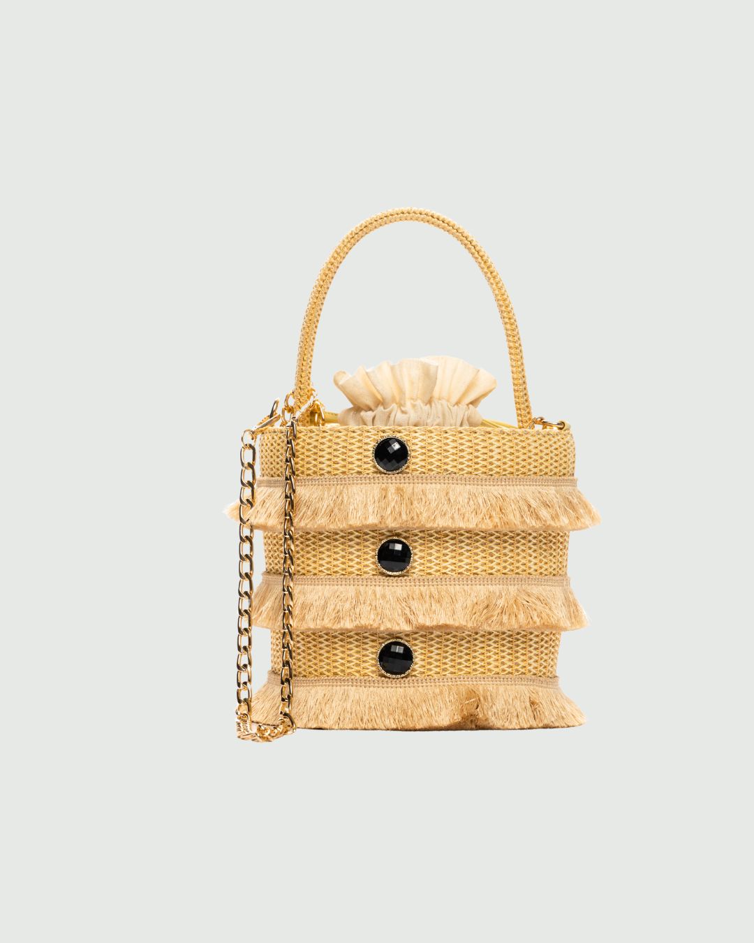 Add a unique touch of personality to your outfit with our SORENA bags, thoughtfully designed in Greece.  The 'Gaia' bucket bag , combines cool beige tones with black accents. Crafted from traditional embroidered fabric featuring an interesting abstract design. This stunning bag combines timeless craftsmanship with modern flair, effortlessly blending style and practicality. Whether you're out for a casual day or a special occasion, this statement piece will carry you through with confidence, bringing a touch of artistry to every outfit.