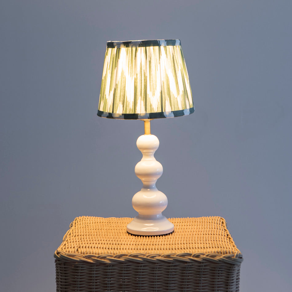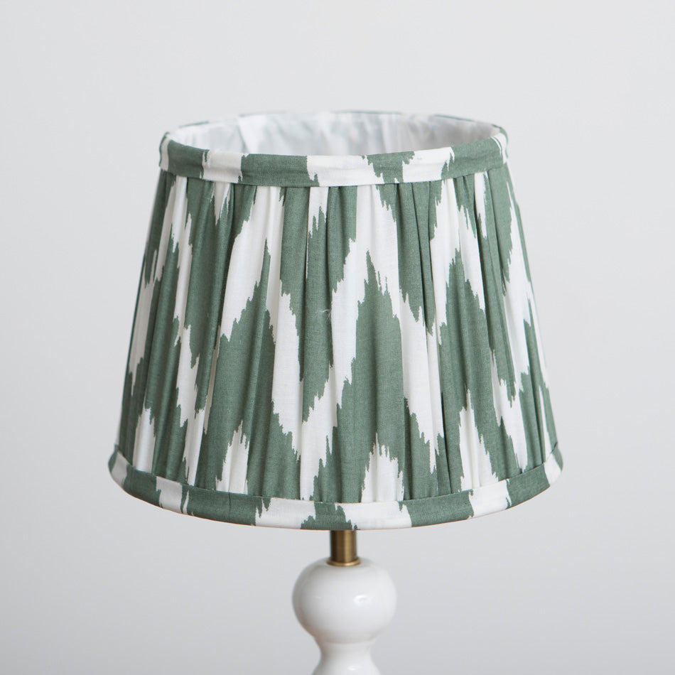 The lampshade features the classic Ikat print, vibrant and lively, making it the ideal complement to any of our table lamp bases. The interior is fully lined with soft cotton, ensuring a refined look and improved light diffusion, perfect for adding a touch of elegance and warmth to any room.