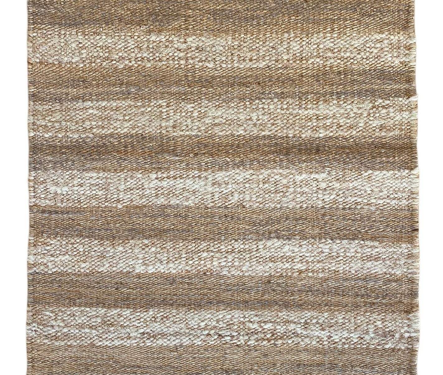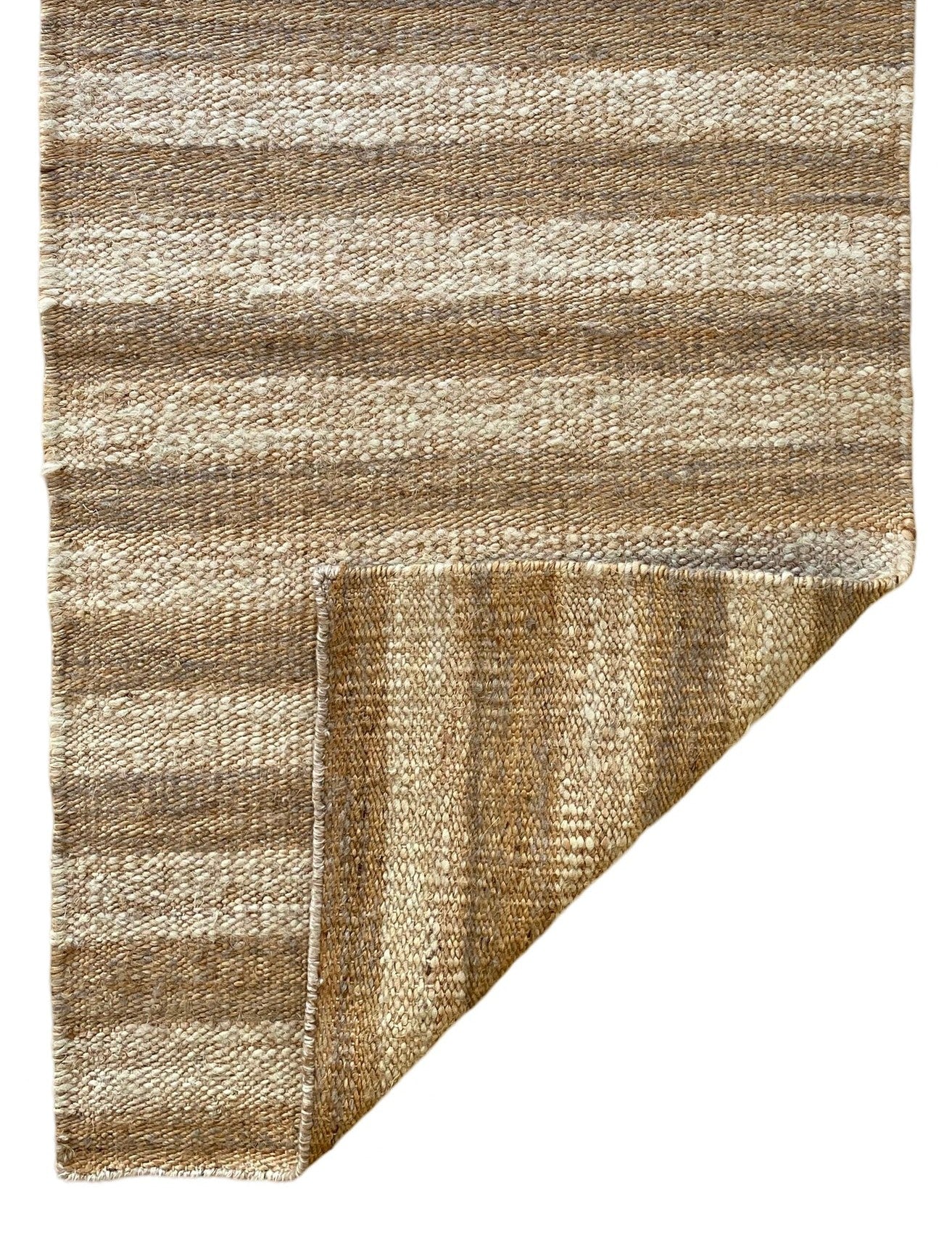 The Classic Jute Stripe rug blends subtle cream shades with darker brownish-grey tones in a striped pattern. The alternating stripes create a visually captivating pattern, adding interest to any room. The soft wool provides warmth and comfort, while the natural jute adds an earthy texture. Handcrafted with care, this rug combines modern style with natural materials, making it a perfect addition to any space in need of charm and functionality.