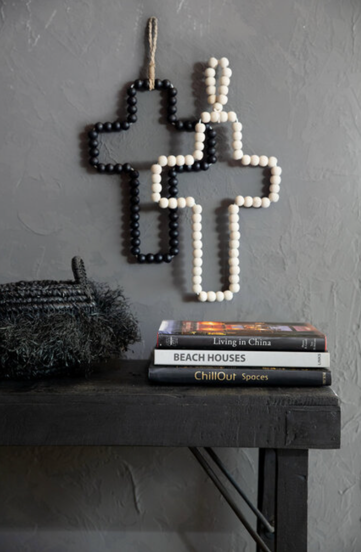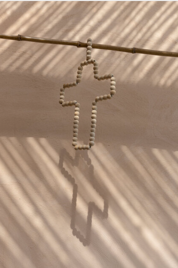 Beyond its spiritual roots, the cross remains a timeless symbol. Handcrafted out of wooden pearls, this hanging piece will add a beautiful artisanal touch to any corner of your home.